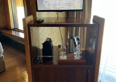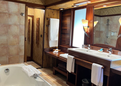 Bungalow suite plage. La chambre est suberbe, mini bar, machine à café Nespresso, terrasse avec 2 chaises, 2 chaises longues avec soussin et sur la sable 2 chaises longues et un hamac. Le restaurant buffet est parfait et celui du petit-déjeuner est grandiose.