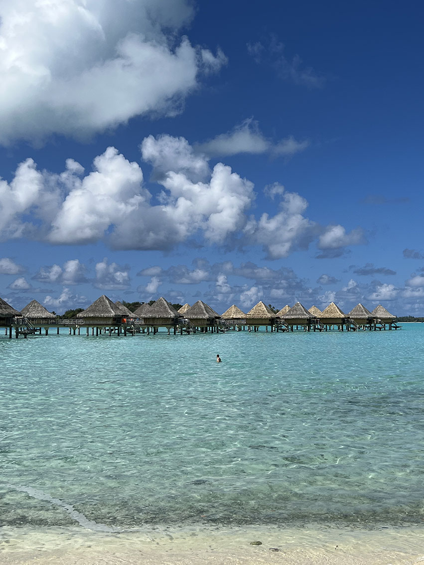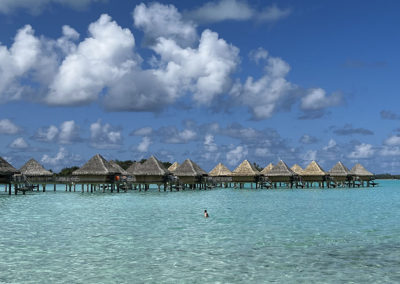On dit que le plus beau lagon du monse se trouve à Bora… on ne va pas dire le contraire. Par contre il n’y a pas grand chose à voir à l’intérieur de l’île, nous avons tout de même fait le tour en scooter avec quelques arrêts, en ville, à la Maison Blanche et sur les plages pour admirer le lagon.