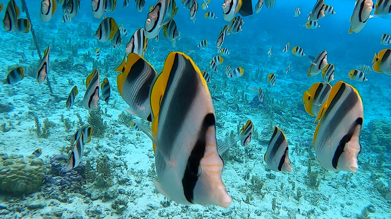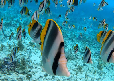 Nous avons également fait une journée bateau, plongées avec les requins pointes noires, au jardin du corail (grandiose) et déjeuner sur un motu.