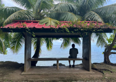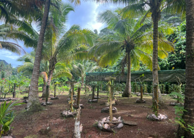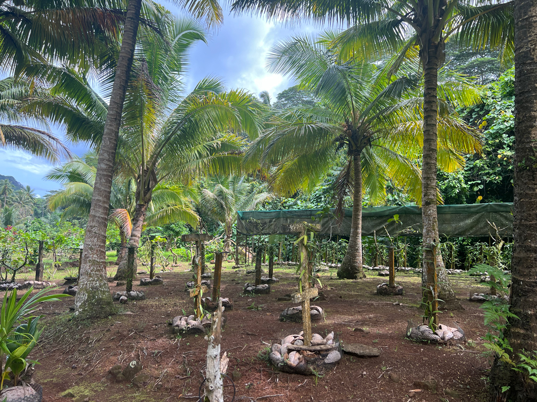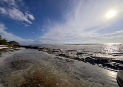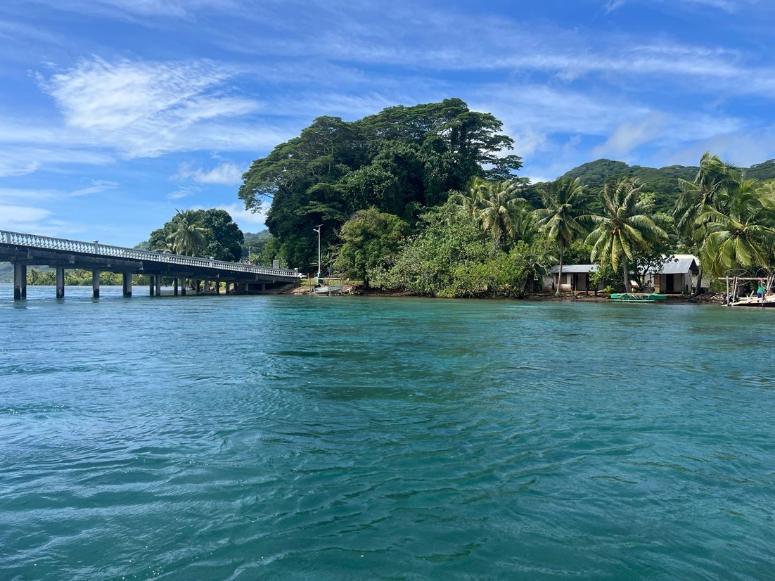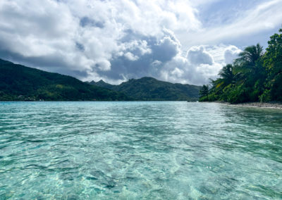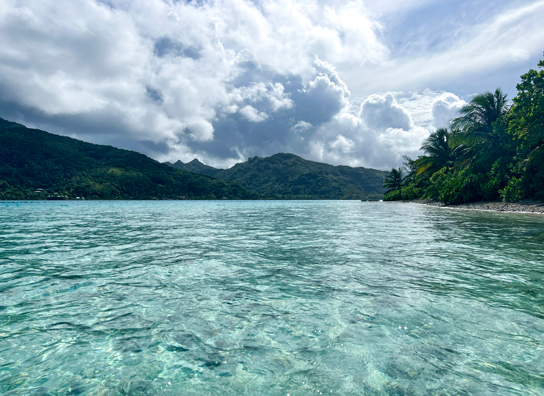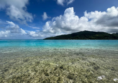 Au nord-ouest de l’île, entre l’aéroport et le village de Fare. A 5 min de l’aéroport.