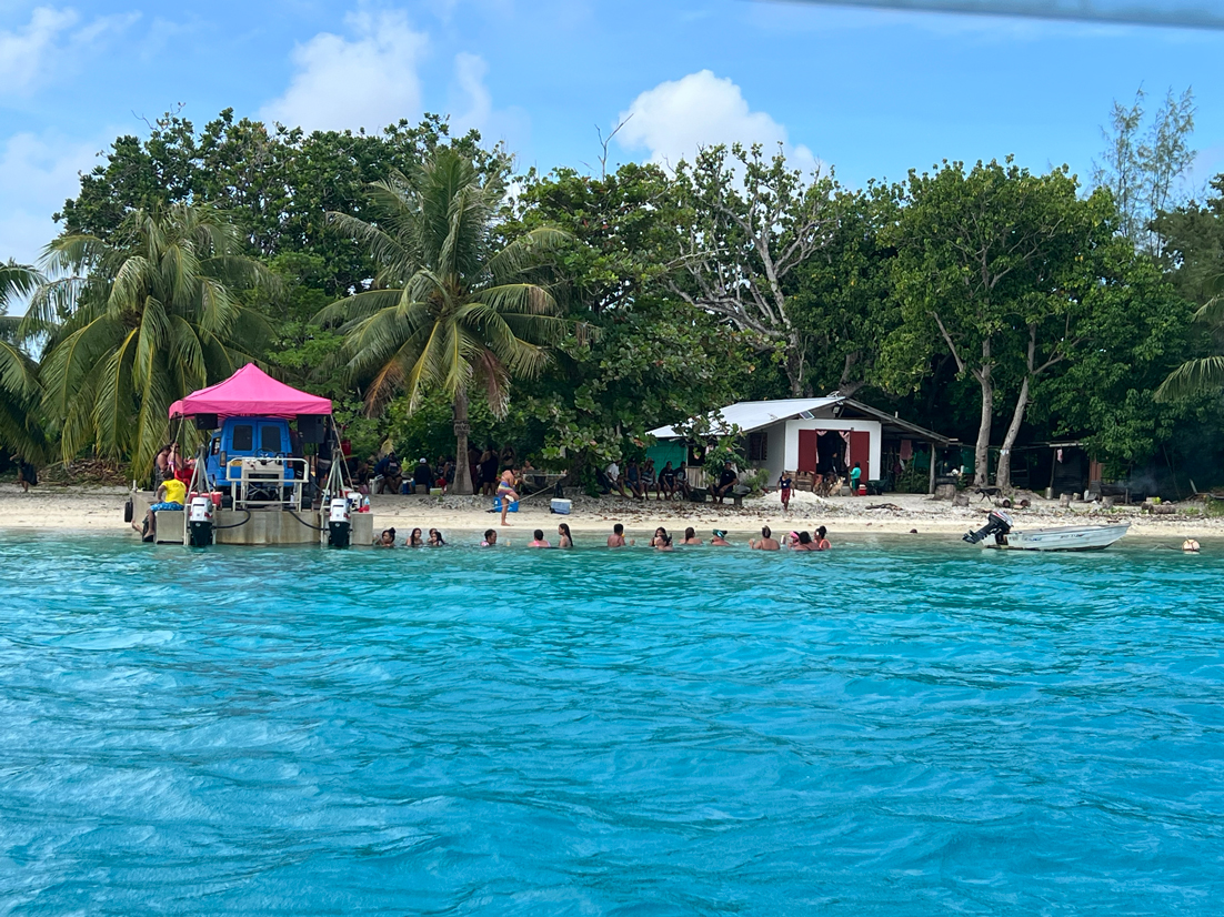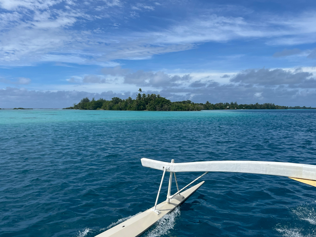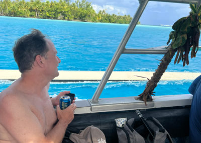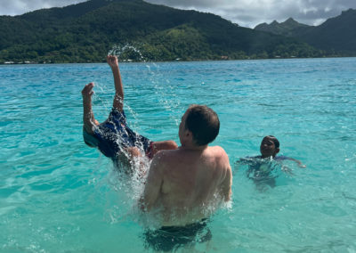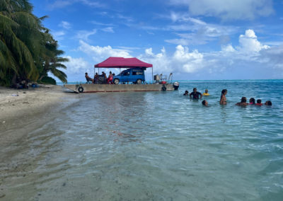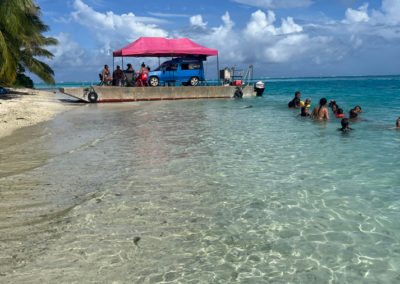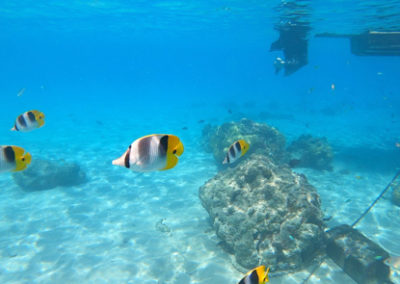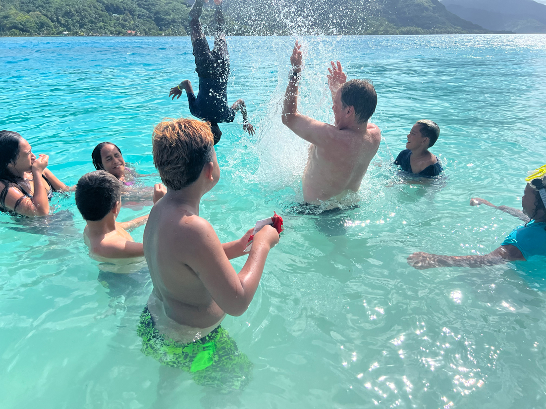 Tour de l’île bateau, snorkeling, déjeuner sur un motu, baignade très sympa avec une grande famille de polynésien.