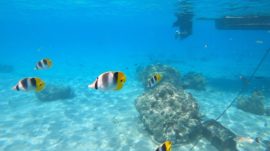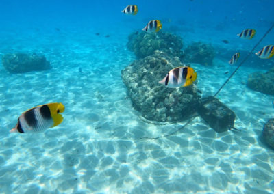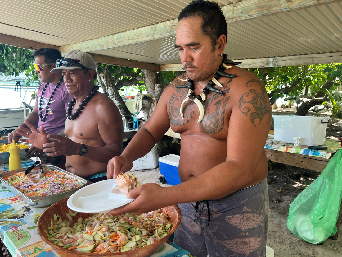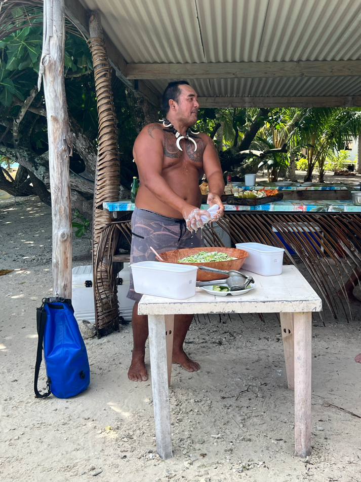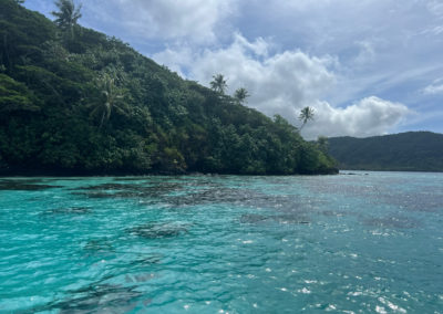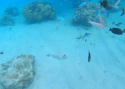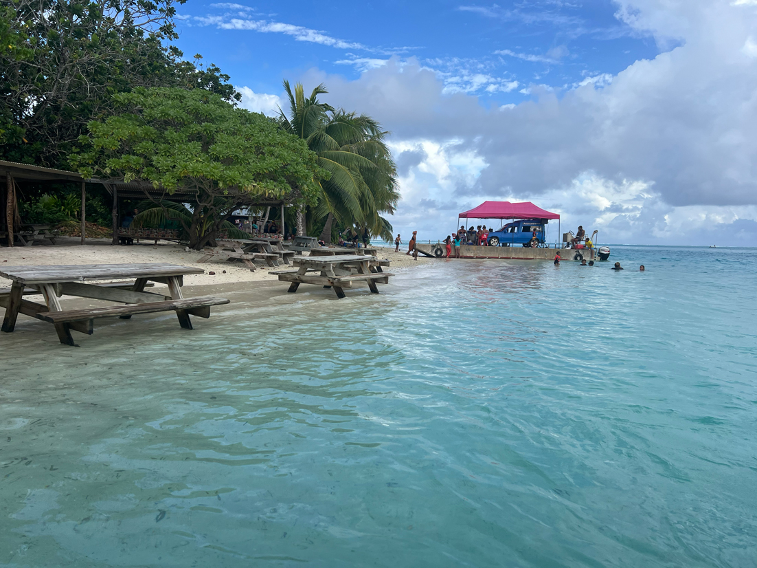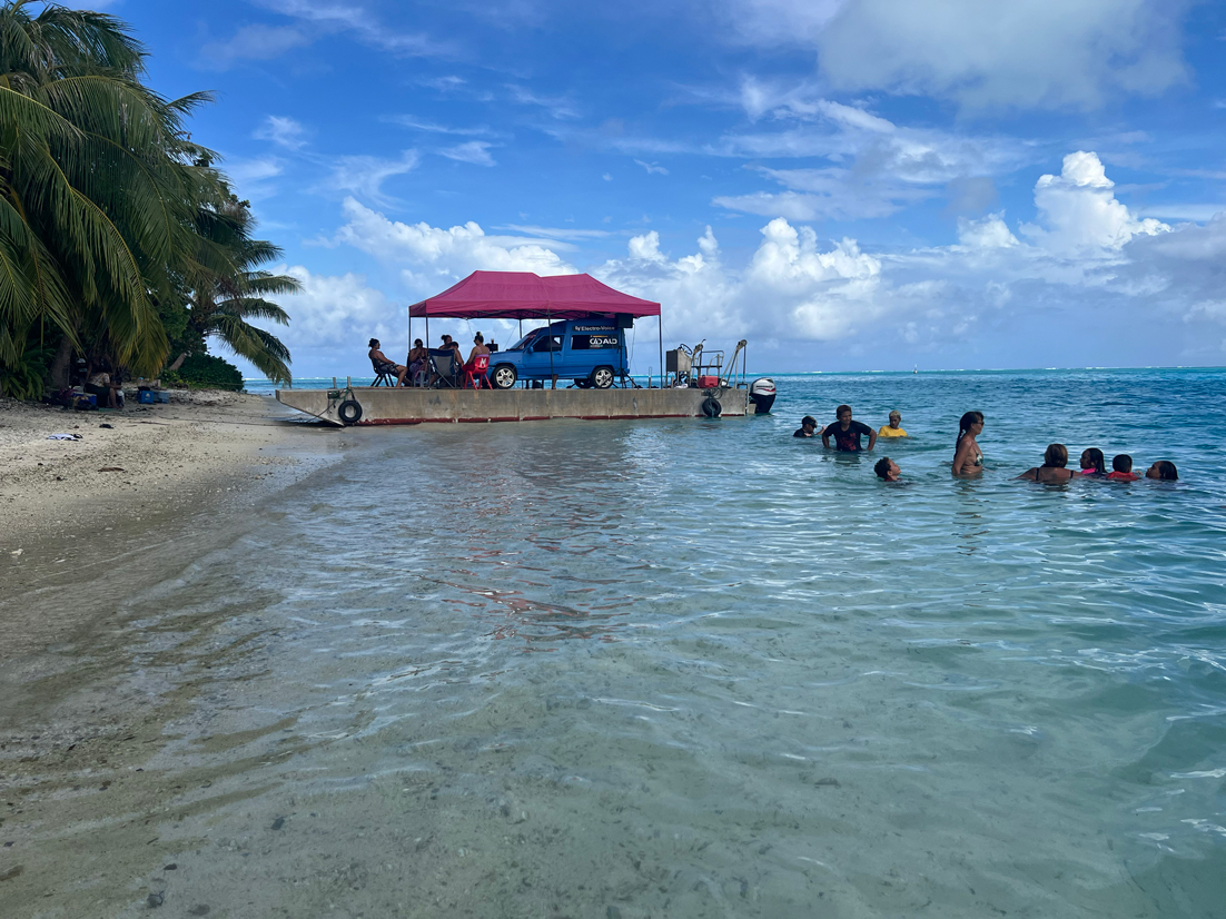 Tour de l’île bateau, snorkeling, déjeuner sur un motu, baignade très sympa avec une grande famille de polynésien.