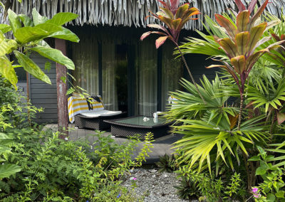 L’hôtel est situé au milieu de jardins tropicaux. Magnifique bungalow jardin, avec mni bar, jolie terrasse avec 2 fauteuils entourée de végétation. La plage n’est pas très grande et pas beaucoup de transat.