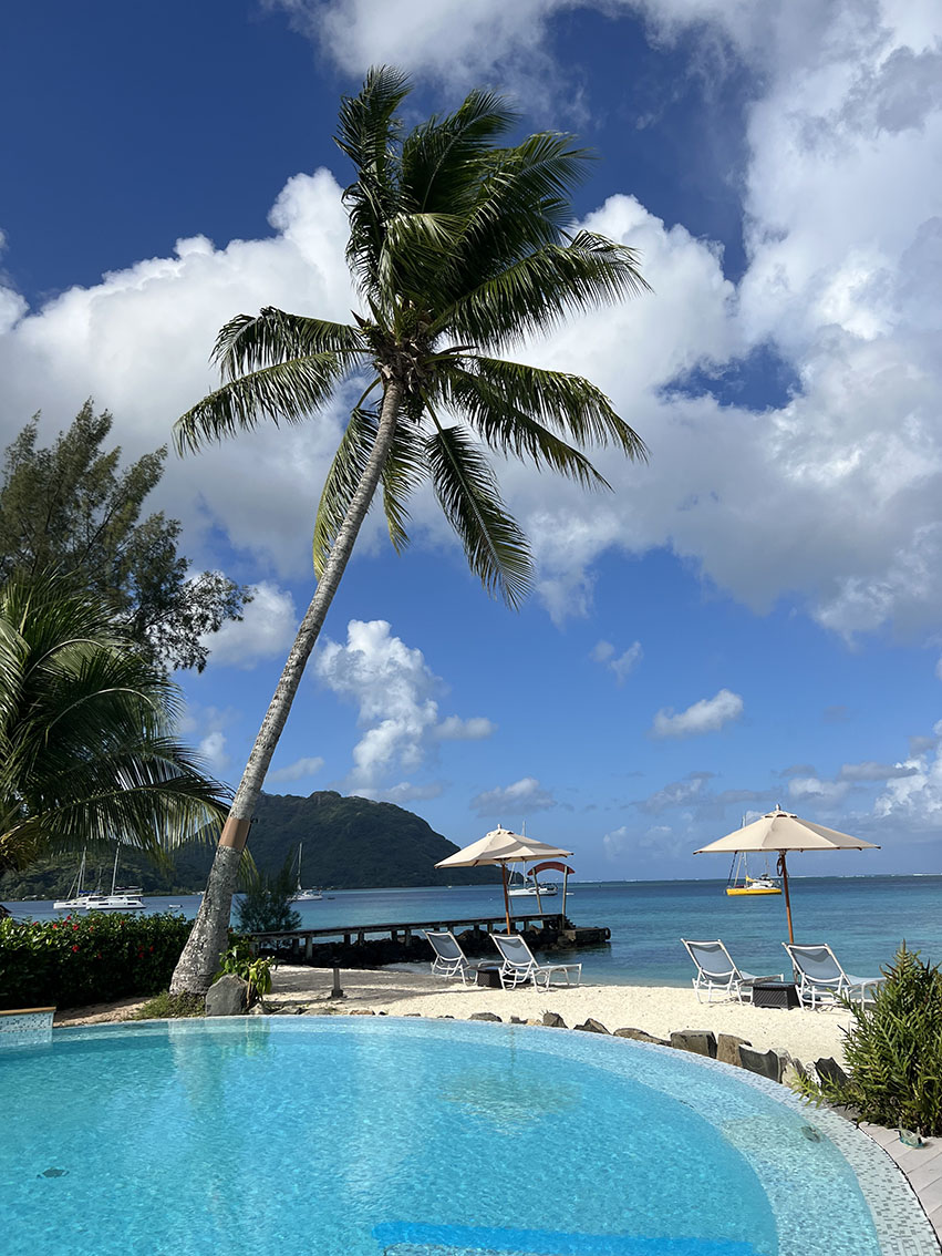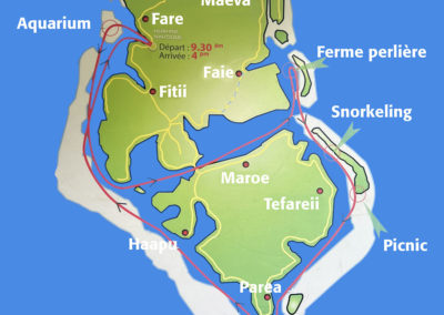 Visite du village à 10 minutes à pied. Les acticités sont très bien, nous avons fait une journée pirogue avec plongée, visite d’une ferme perlière, déjeuner sur un motu. Nous avons également fait le tour des 2 îles (env. 60 km) en scooter, quelques arrêts pour visite la maison du paréo, une vanillerée, les anguilles sacrées, la magnifique plage de l’ancien Sofitel et le musée du coquillage.