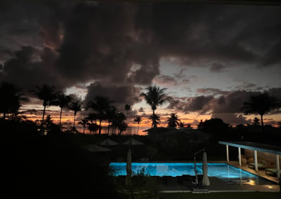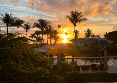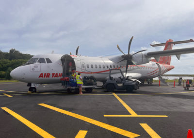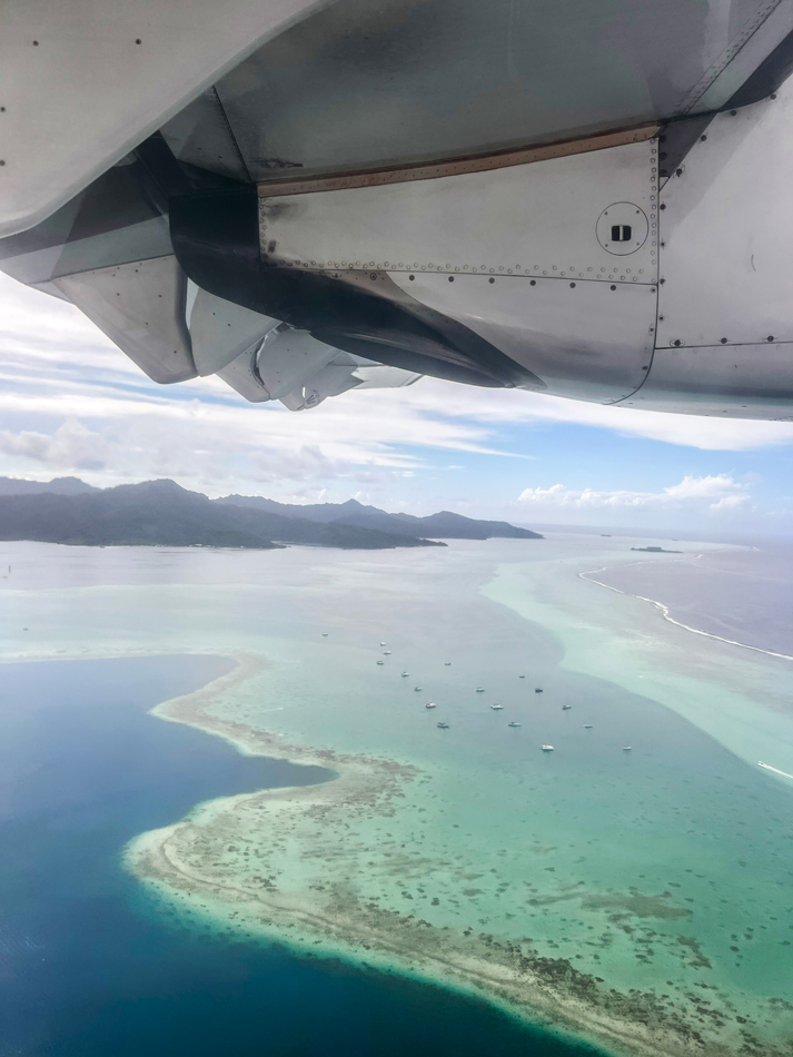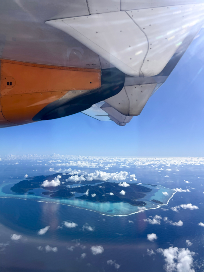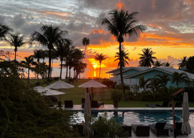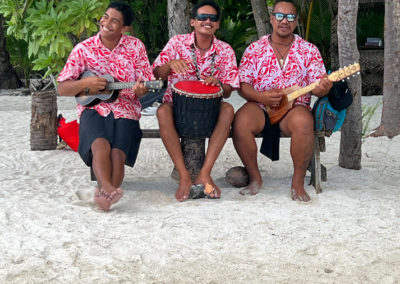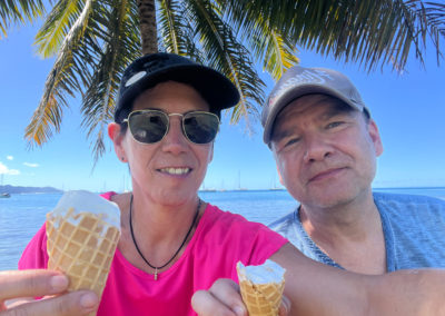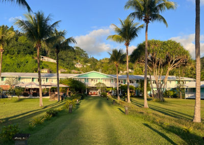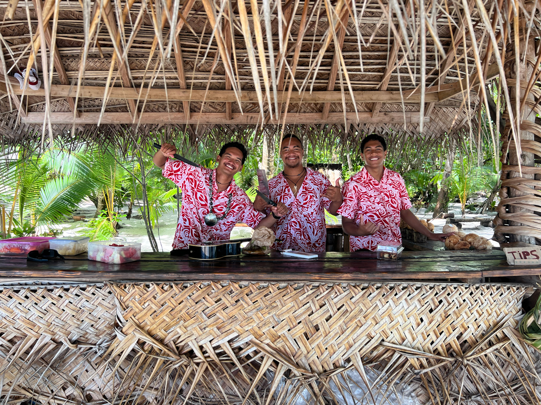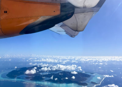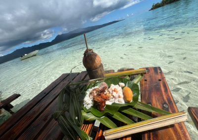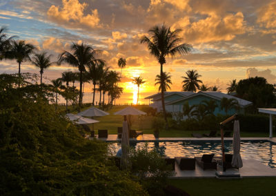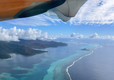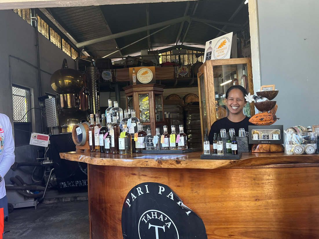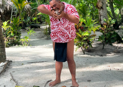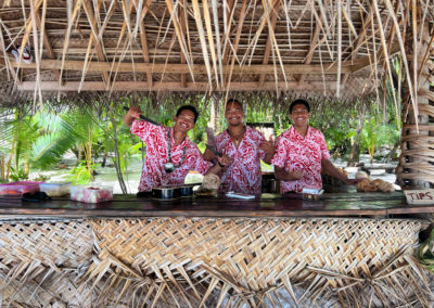 Magnifiques couchers de soleil. Excursion à Tahaa avec ARE Tour, distillerie Pari Pari, déjeuner sur un motu, visite d’une vanilleraie et show coco. Balade à vélo jusqu’à Uturoa et journée en quad avec Céline et sa fille.