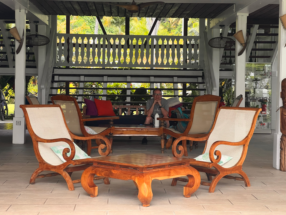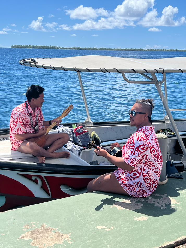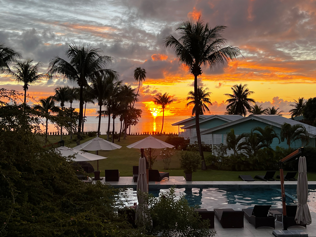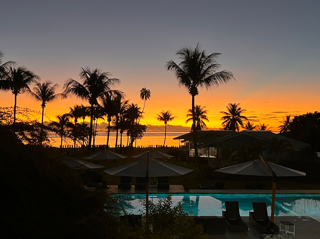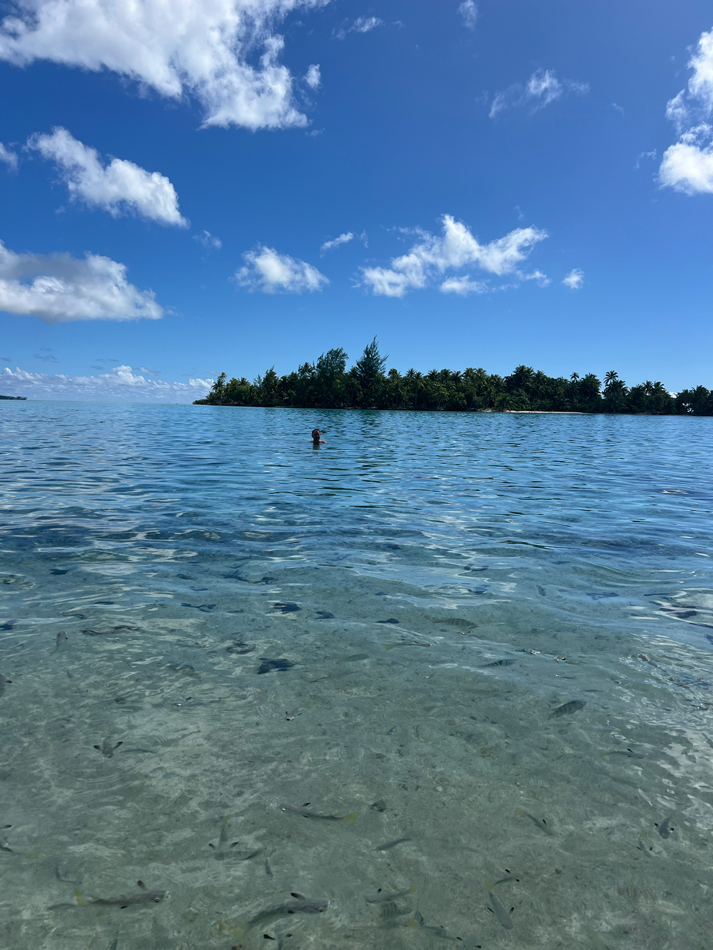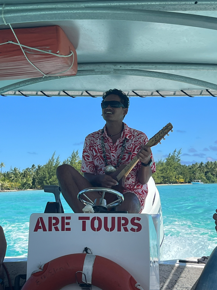 Magnifiques couchers de soleil. Excursion à Tahaa avec ARE Tour, distillerie Pari Pari, déjeuner sur un motu, visite d’une vanilleraie et show coco. Balade à vélo jusqu’à Uturoa et journée en quad avec Céline et sa fille.
