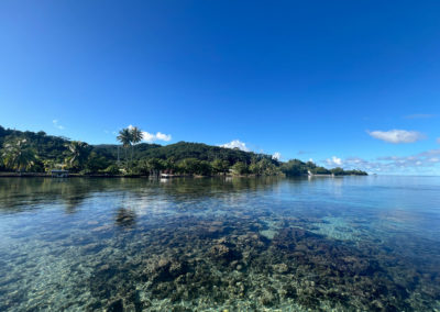 Sur la côte au nord-ouest de l’île, proche du village d’Uturoa. À 10 min de l’aéroport.