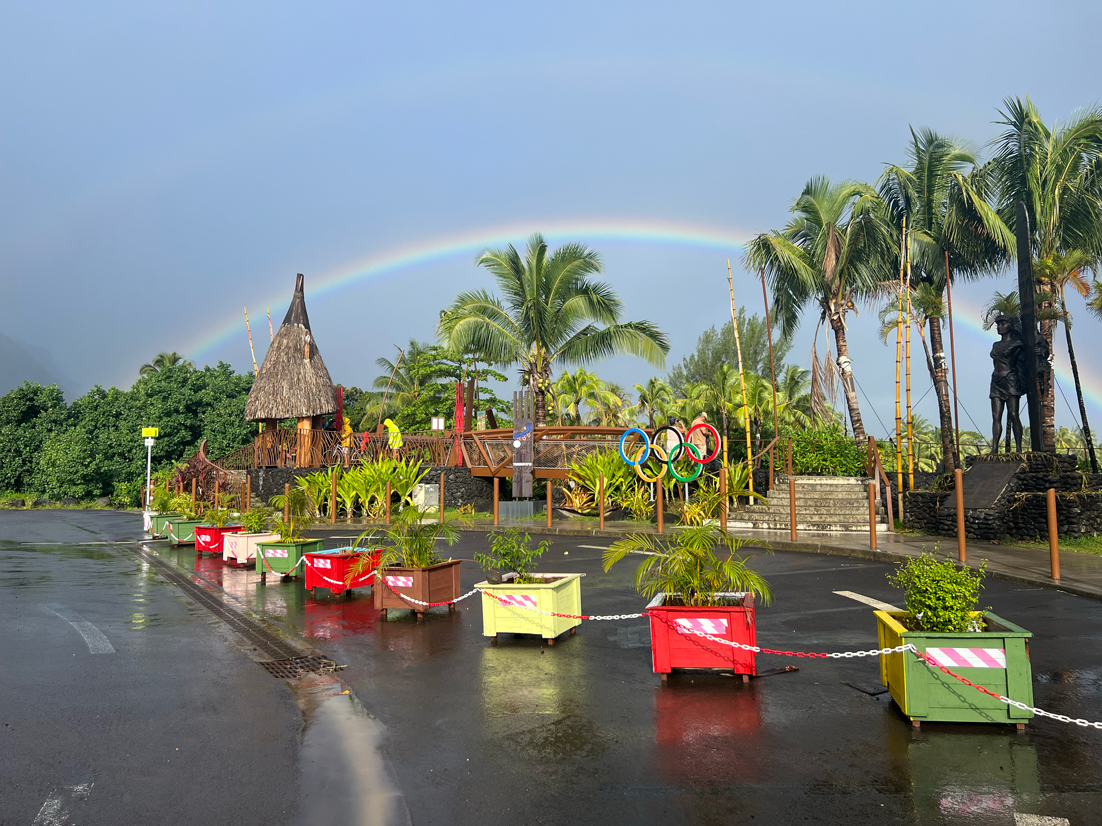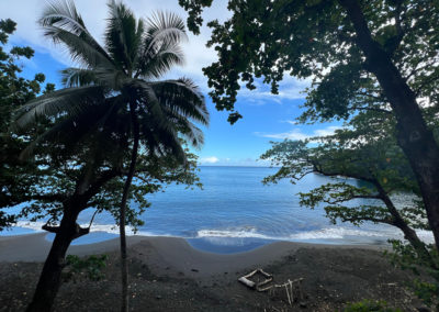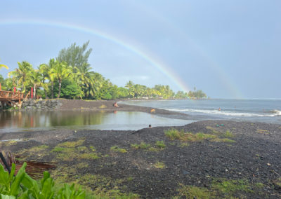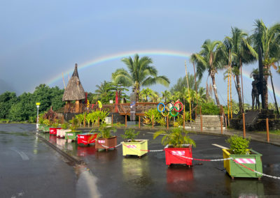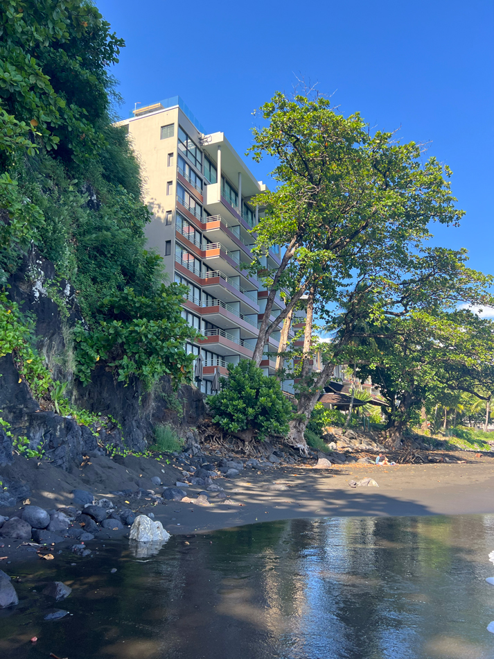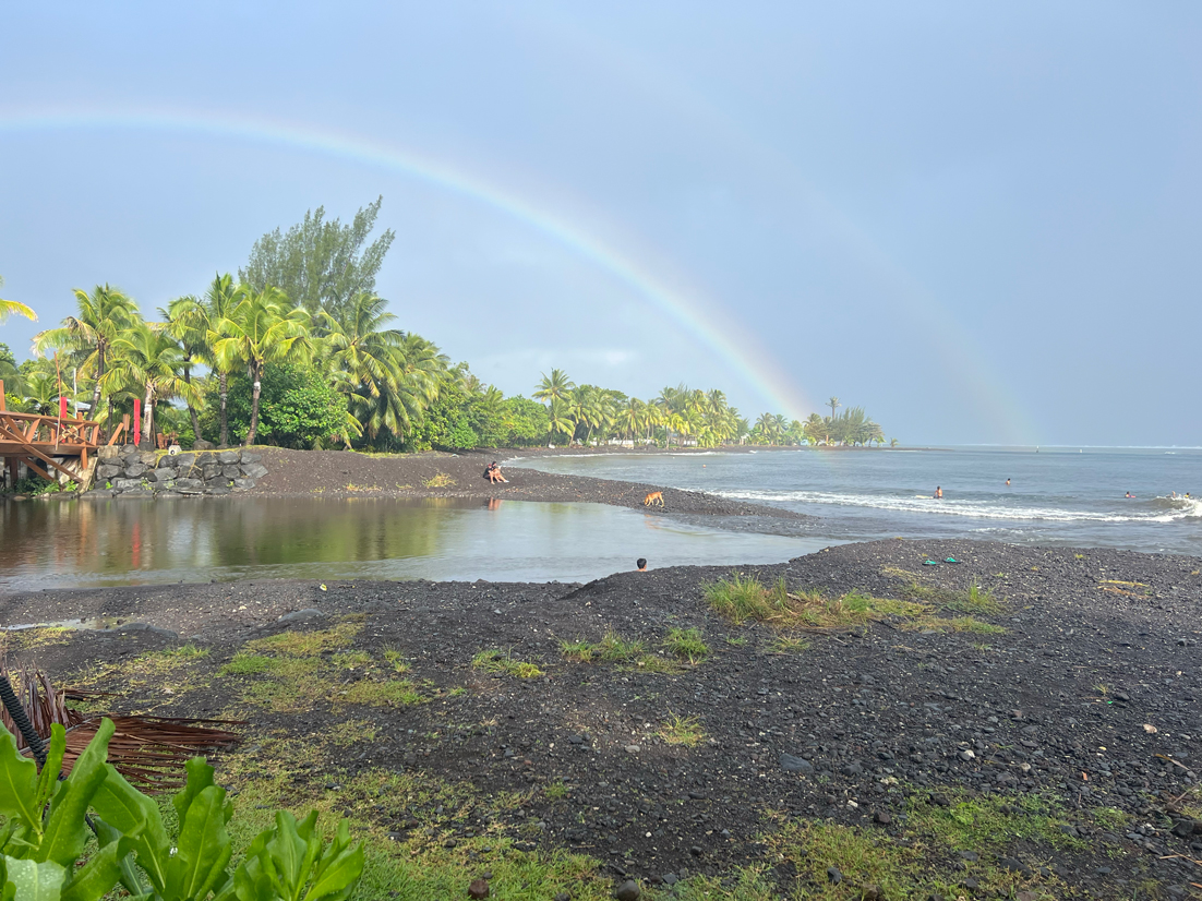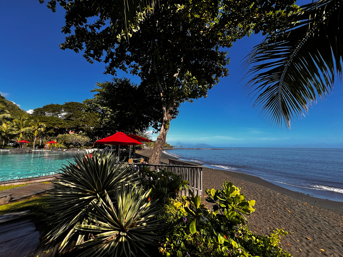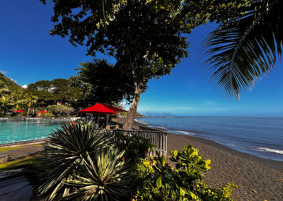 Sur la côte nord-est de Tahiti, le long de la plage naturelle et volcanique de Lafayette. A 20 min de l’aéroport et à 10 min de Papeete