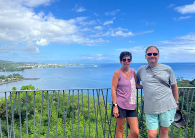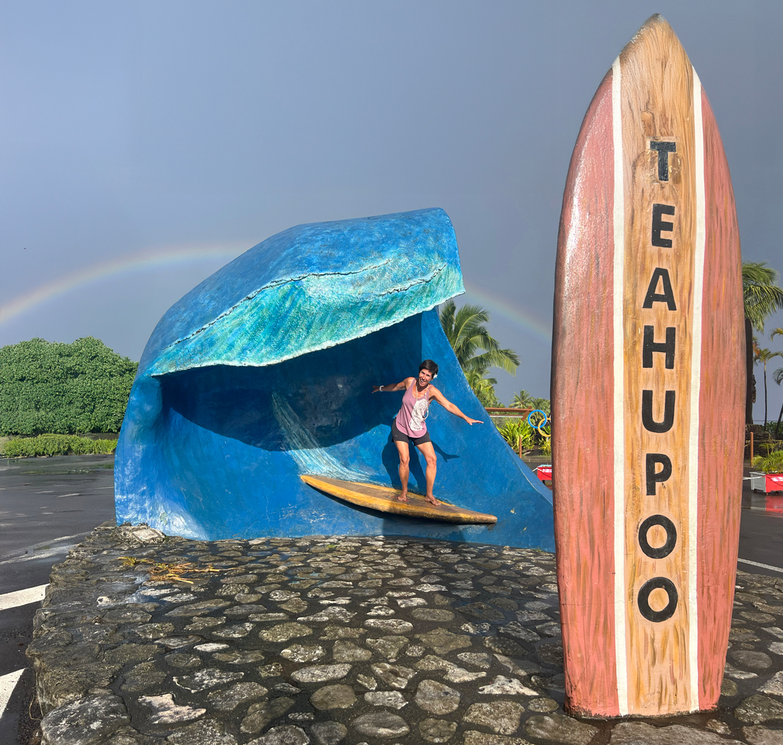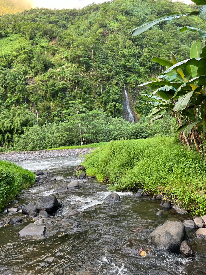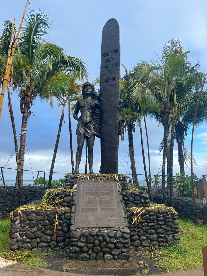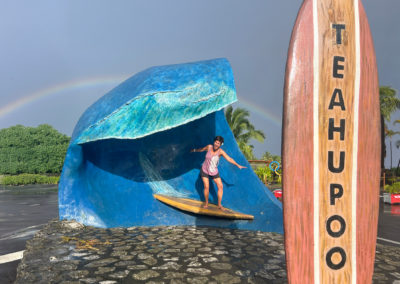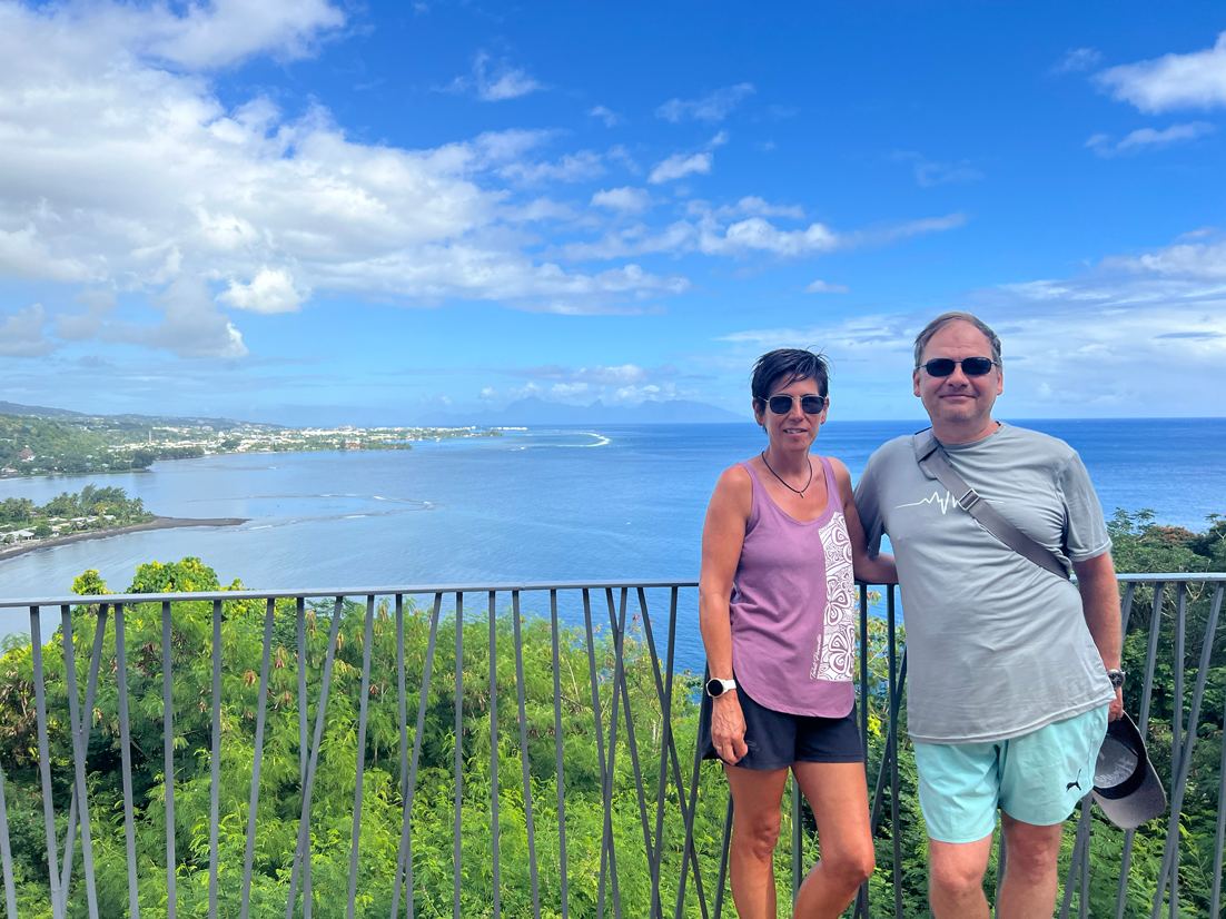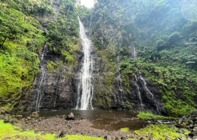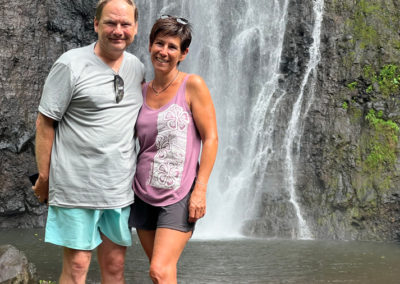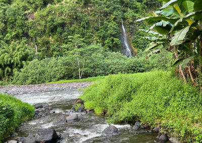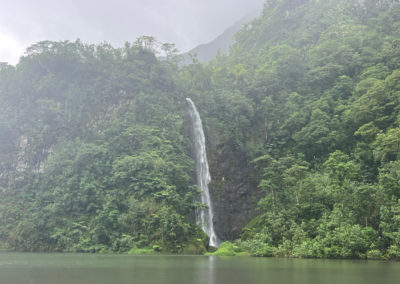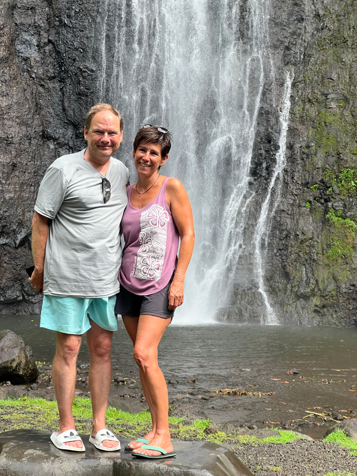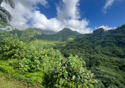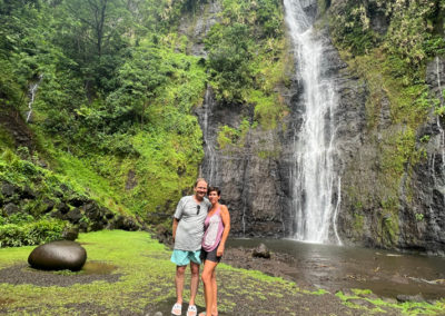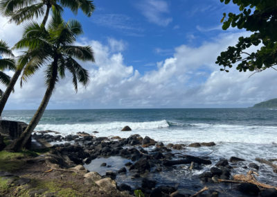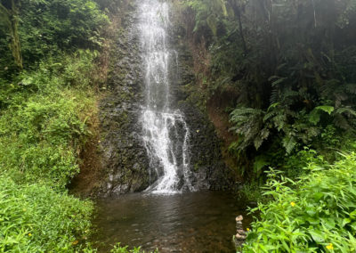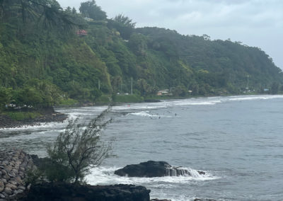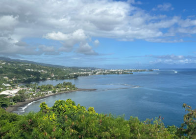 Excursion « tour de l’îl » avec Marie-Jeanne, belvédère de Tahara’a, pointe venus, poit de vue Tabahi, les 3 cascades, déjeuner chez les parents de notre guide, Teahup’O, célèbre plage de Taharuu.
