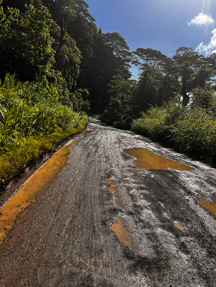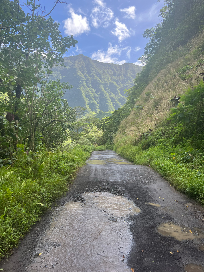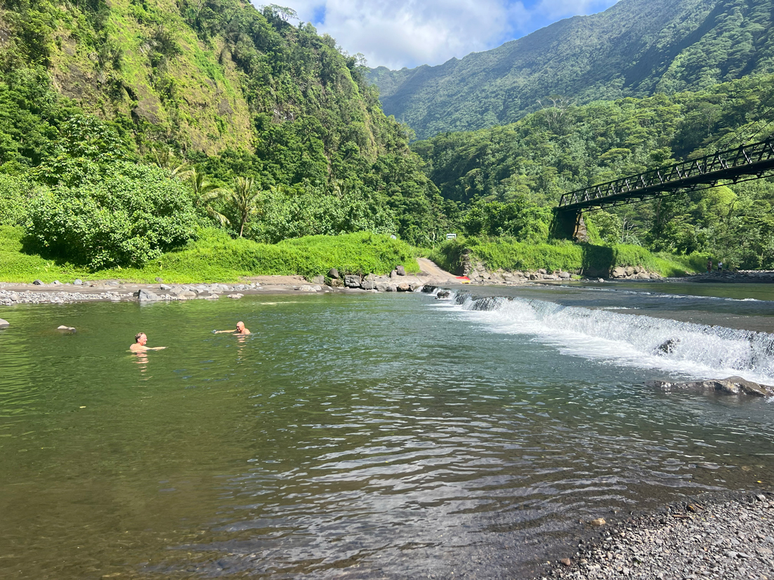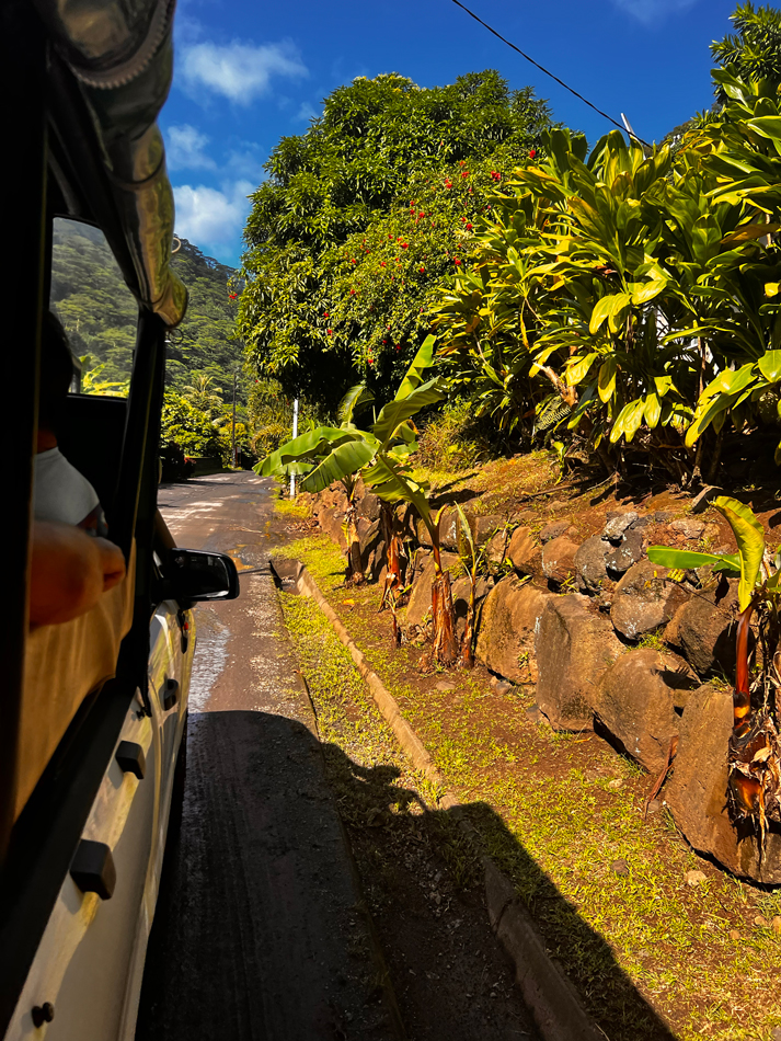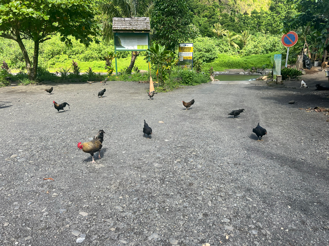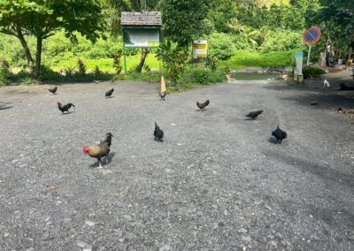Excursion « safari » avec Karl, route de Papenoo jusqu’au relais de la Maroto pour le déjeuner. Pas possible de faire toute la route de la vallée à cause d’un éboulement. Retour par la même route.